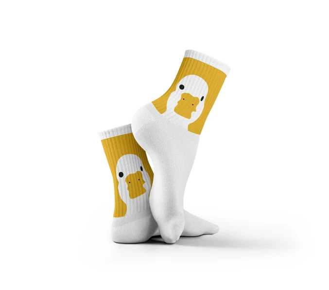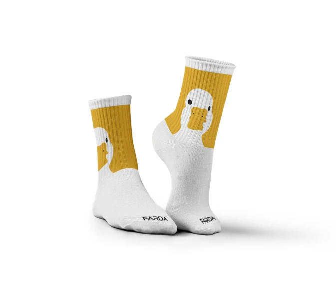 جوارب البطة الكبيرة البيضاء تجسد روح المرح الراقي بتصميم فريد يمزج بين الأبيض النقي والأصفر الدافئ، لتمنحك إطلالة شبابية أنيقة تحمل طابعًا من الدعابة الهادئة والتميز البصري