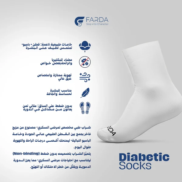 إذا كنت تبحث عن الجوارب المثالية التي تجمع بين الراحة، الأمان، والتهوية، فهذه الجوارب هي الخيار الأمثل  تم ‏تصميمها خصيصًا لمرضى السكري لتمنح القدمين عناية استثنائية وتحافظ على صحتها بعيدًا عن التهيجات والمضاعفات